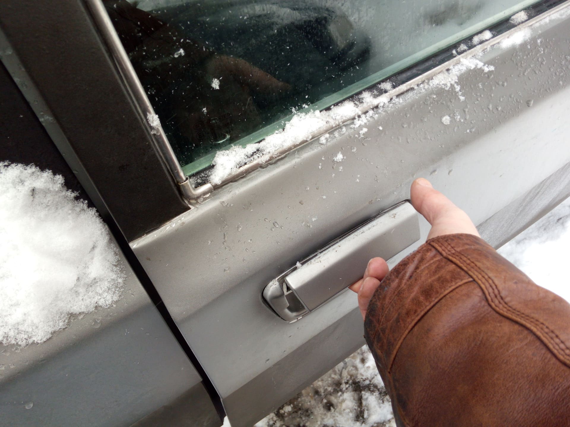 - Попробуйте открыть другие двери. Начните с задней двери или багажника. Часто они оказываются менее обледеневшими, и через них можно попасть в салон.